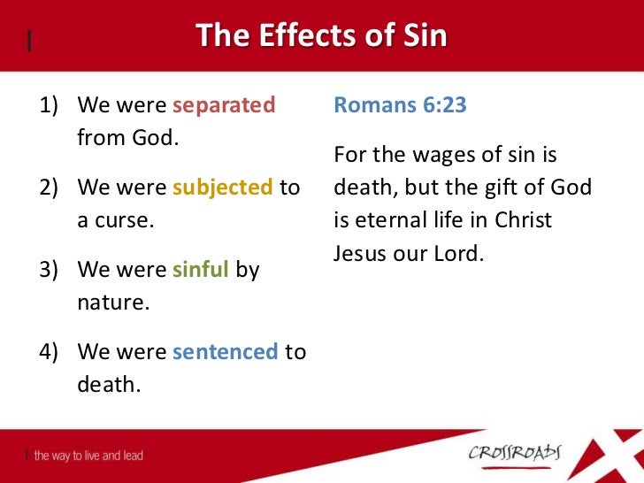 Sin Consequences Of The Fate Of The Wicked. For the wages of sin is death but the free gift of God is eternal life in Christ Jesus our Lord Romans 623. Identify and explain the specific effects of sin on the sinner.