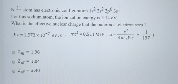 Effective Nuclear Charge Of Sodium